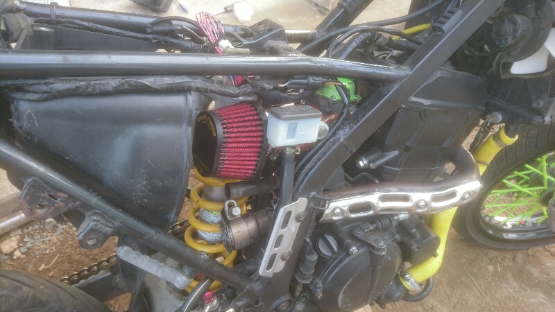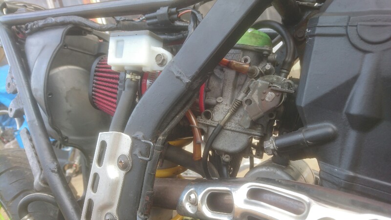 パワフィル化することによって邪魔くさい純正エアクリBOXを外してキャブへのアクセスを簡様化することが狙いでした。